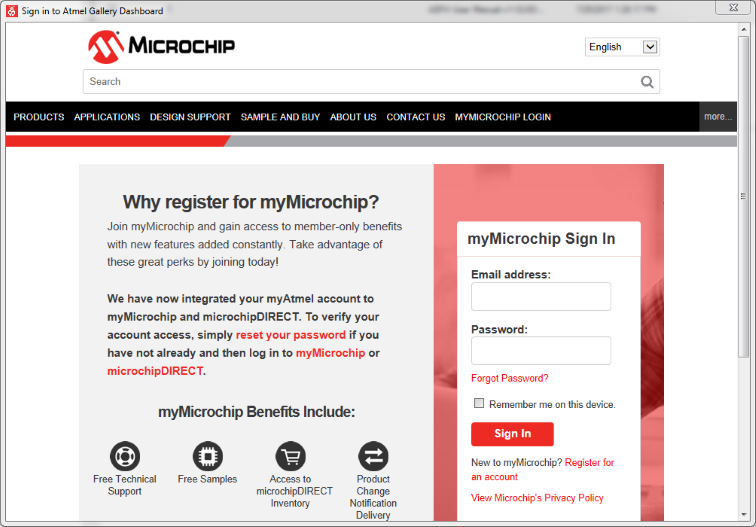 Clicking on Sign in on the top right of the dialog, you will be asked to sign in to your Microchip account.