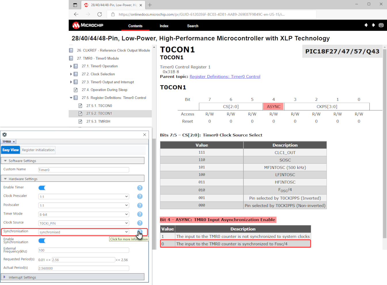 Try the link here: PIC18F47Q43®ister=T0CON1