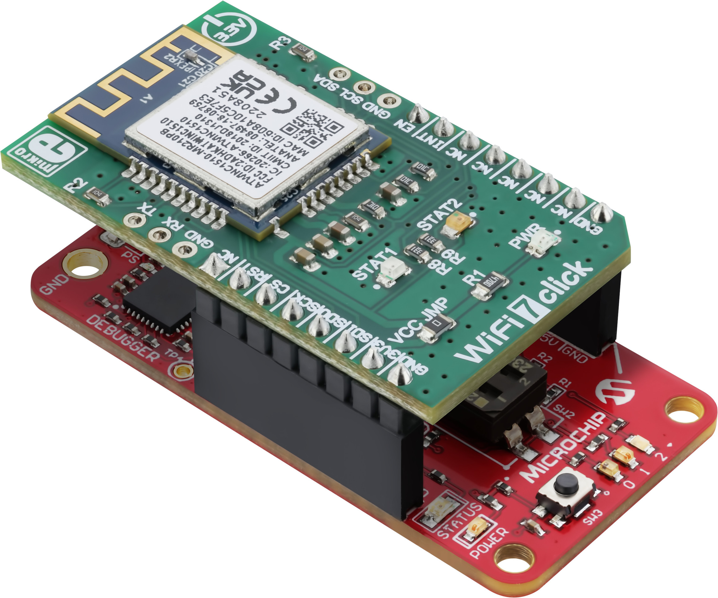 WiFi 7 Click board contains the Microchip ATWINC1510-MR210PB module, which supports IEEE® 802.11 b/g/n protocols. The Click board connects to the Trust