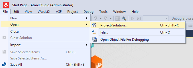 - Alternate method is to double click the (.atsln) file from the extracted folder, this action will start Atmel Studio and then load the project.