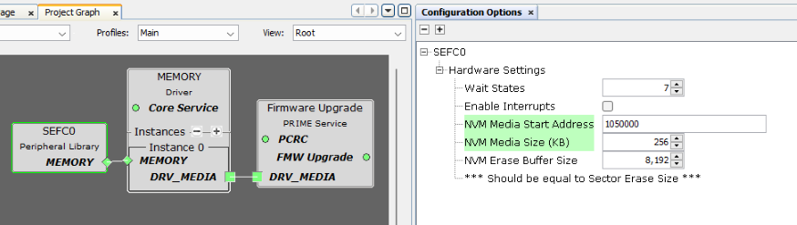 The PRIME Firmware Upgrade service library is configured to work in conjunction with the MEMORY driver to easily add any non-volatile memory to store the downloaded images.
