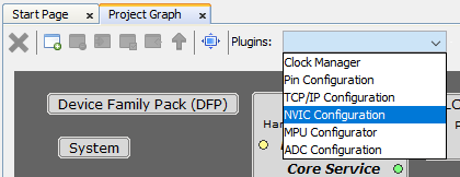 - Start NVIC Configuration from Plugins drop-down menu.