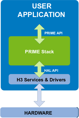 The general architecture of a user application including the PRIME Stack is shown in the next figure.