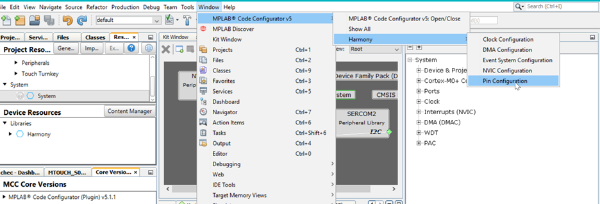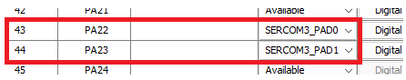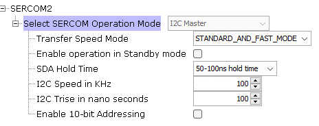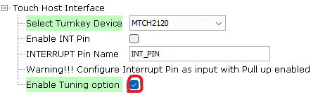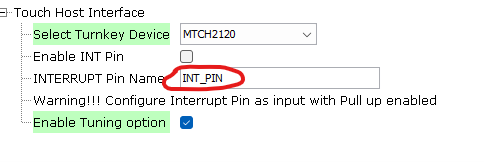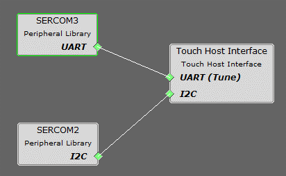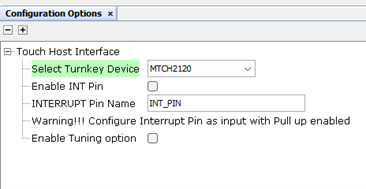 I2C is the only interface for the host driver and the selected MTCH2120 turnkey device. Choose a satisfying Serial Communication (SERCOM) and select the corresponding pins from the PIN configurator.