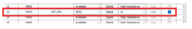 Configure the Interrupt pin in the Pin Configuration window.
