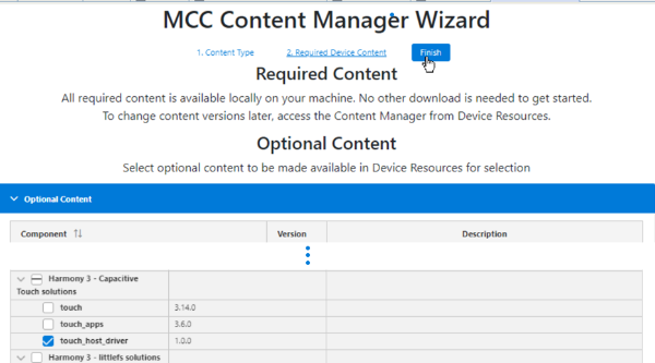 Select touch_host_driver from the optional content and click Finish.