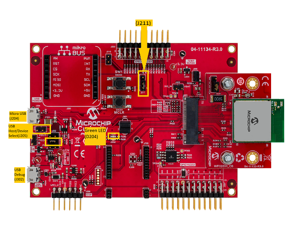 - Connect the USB device to the micro-B connector (J200) using a USB Type-A Female to micro-B male cable (This cable is not included in the kit).