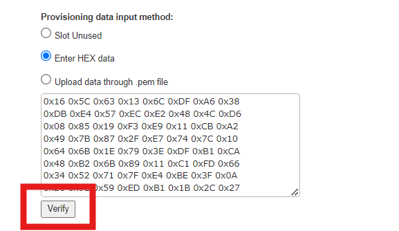 .pemfile or entering the hex data, click the Verify button.Figure 1-6. Verify Public Key Data