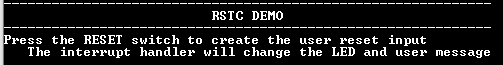 This example application shows how to use the RSTC peripheral to generate an interrupt instead of generating a reset, when the Reset switch is pressed on board.