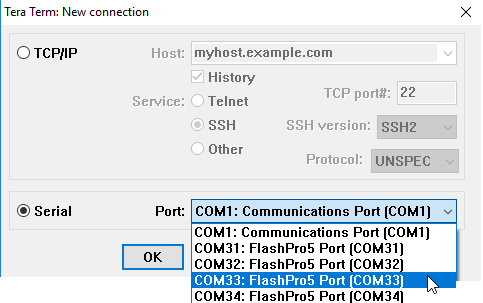 list as shown in the following figure. For example, COM33: FlashPro5 Port