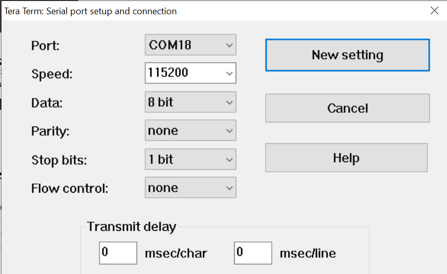 - Open Tera Term Serial tool and Goto Setup → Serial port and set the following