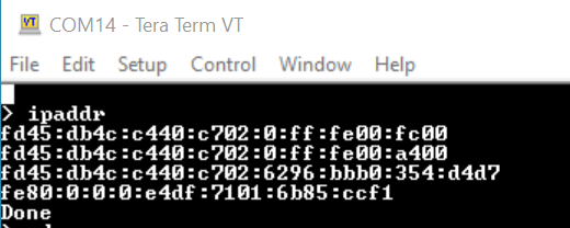Node2: > dataset channel 19 > dataset networkkey 00112233445566778899AABBCCDDEEA9 > dataset commit active > ifconfig up > state > thread start > state - Once the above commands are executed the node2 joins the thread network formed by