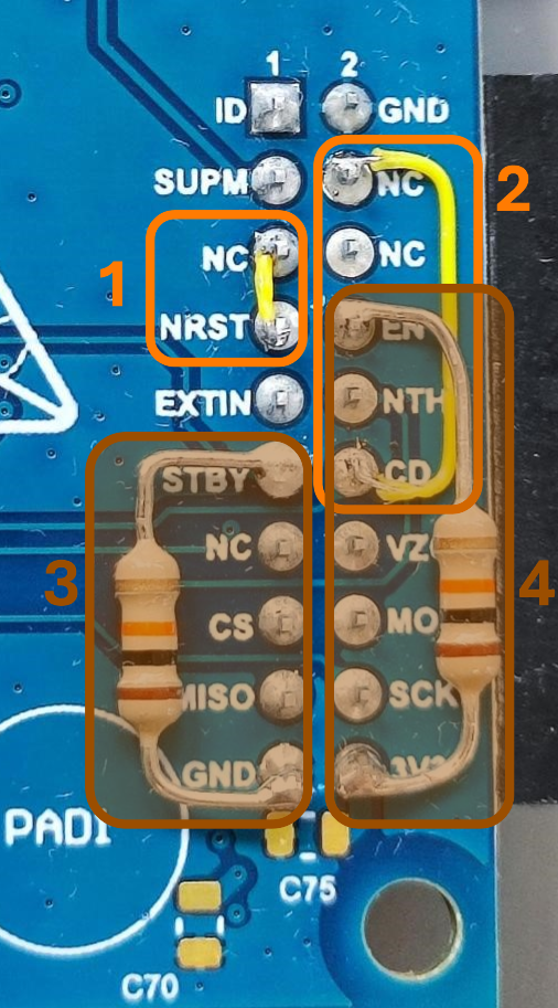 "NRST" trace by connecting pin 7 to pin 5 of the connector