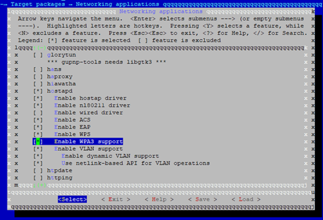 .Figure 3-4. menuconfig: Enable hostapd - Enable WPA3 Support for hostapd