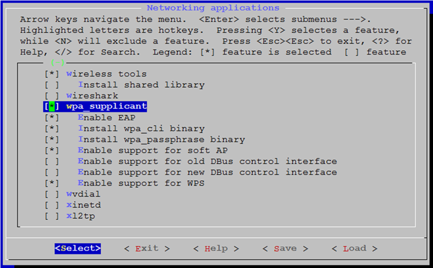 Target package->Networking applications, then selectwpa_supplicant.Figure 3-2. Networking applications – wpa_supplicant Screen