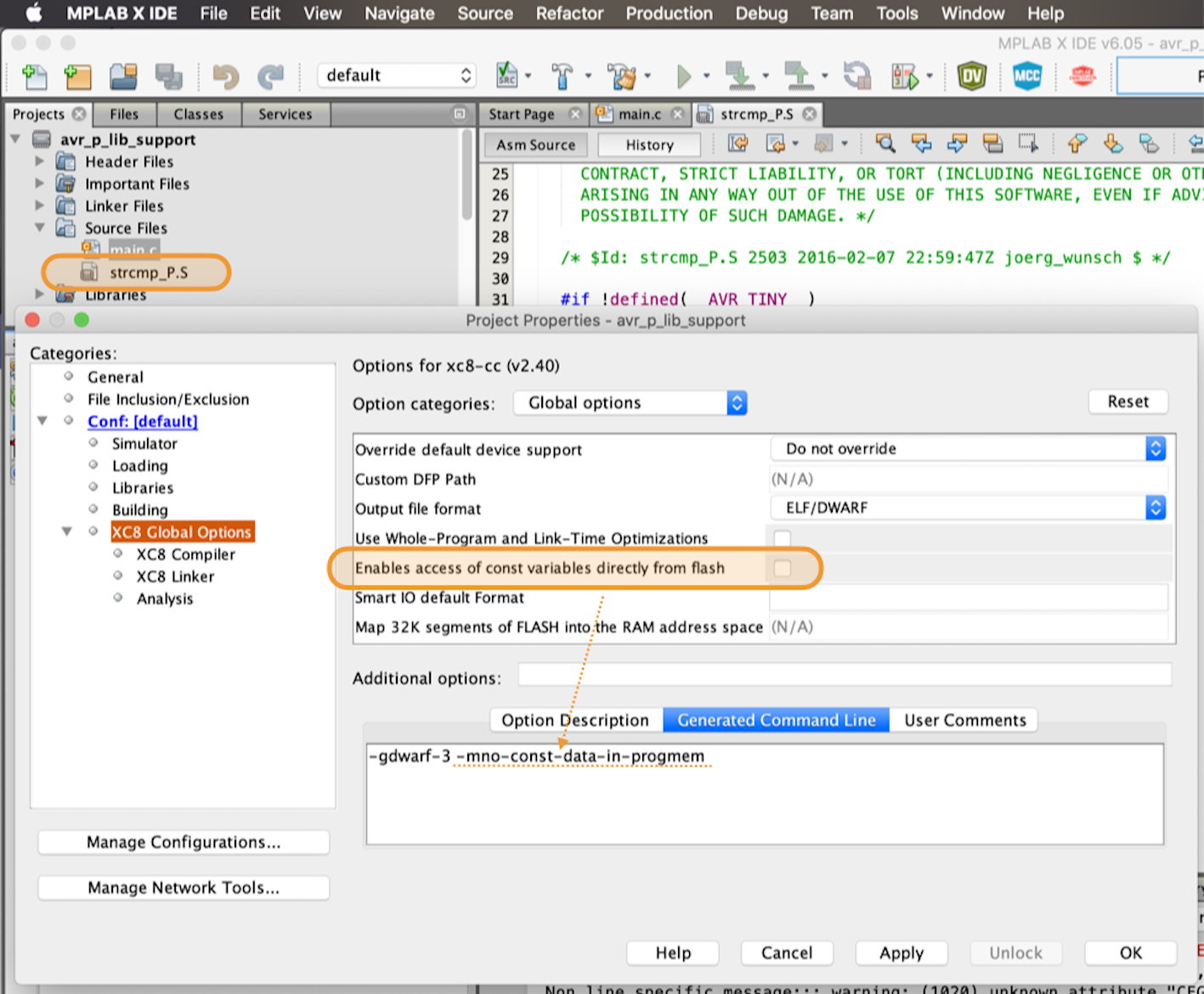 checkbox in the “XC8 Global option” category in the MPLAB X IDE Project