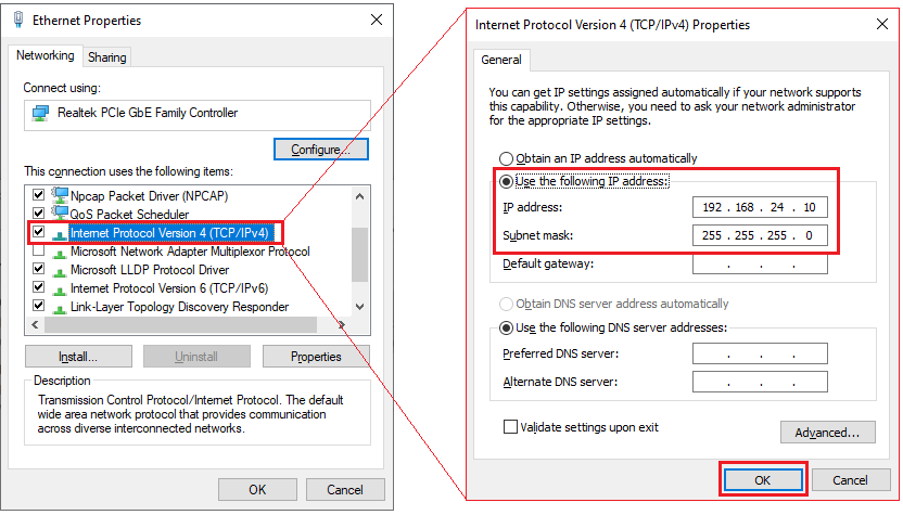 To access and modify Ethernet Settings on a Windows PC, follow these steps: