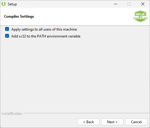 You now have the opportunity to select compiler settings. Select any options you need.