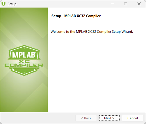 Launch the compiler installation executable. A compiler splash screen briefly displays and then the Welcome screen opens. Click the Next button to continue.