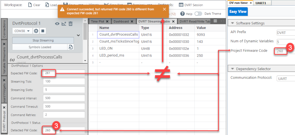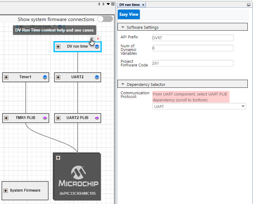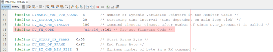 if the values don't match.Note: The default value of the Project Firmware Code matches the Expected FM Code in the Data Visualizer.Note: This Project Firmware Code, is used in the DVRunTime_Config.h