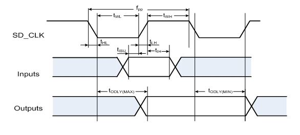 - Maximum clock frequency specified is limited by the SDIO client interface internal design; the actual maximum clock frequency can be lower and depends on the specific PCB layout.