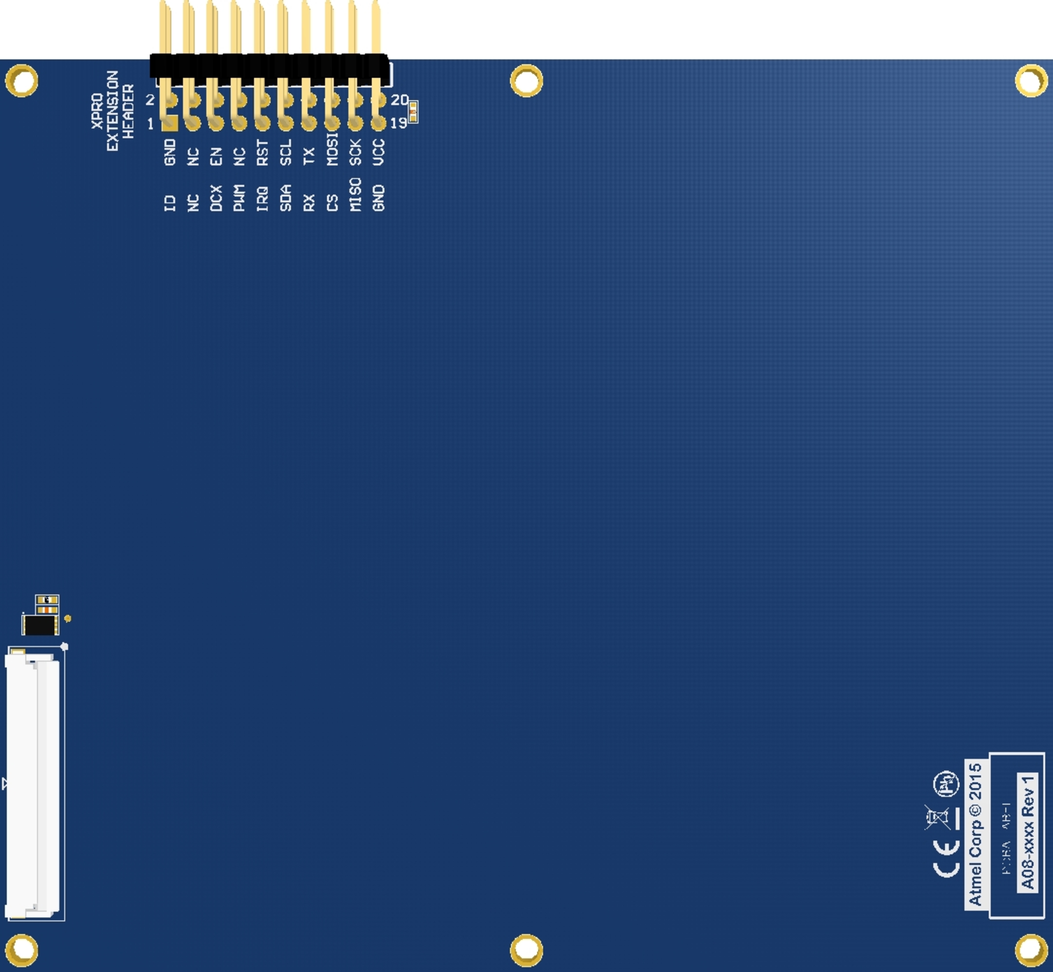 This board template is designed for boards with large displays. It is the exact same size as a large Xplained Pro MCU board with mounting hole locations at the exact same place for board stacking purposes. More information on board stacking options can be read about in Board Stacking Options.