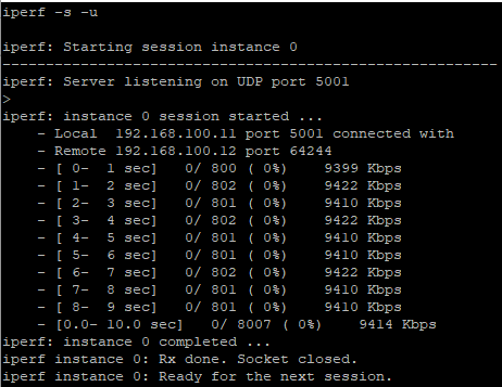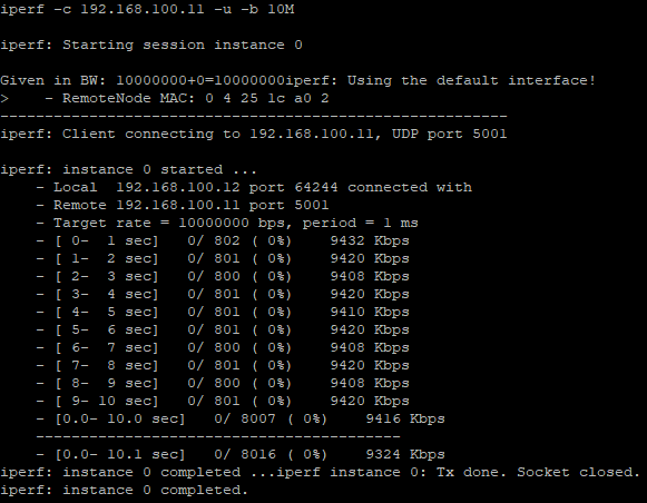 other node and type “iperf -c <SERVER_IP_ADDR> -u -b 10M” in the terminal