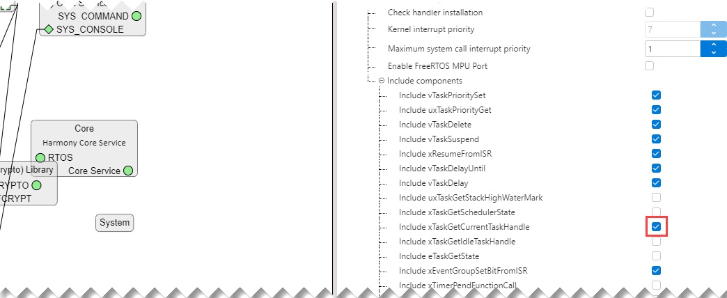 below.: Ensure “Include xTaskGetCurrentTaskHandle” is enabled.