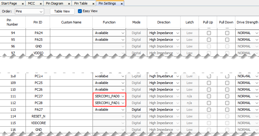The I/O pins on the device can perform alternate functions besides the general-purpose I/O function. In this section, we will configure the functionality of the I/O pins needed for this demonstration.