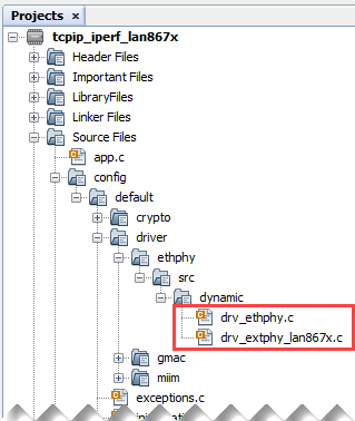 verify in the “Projects” tab if the files drv_ethphy.c and
