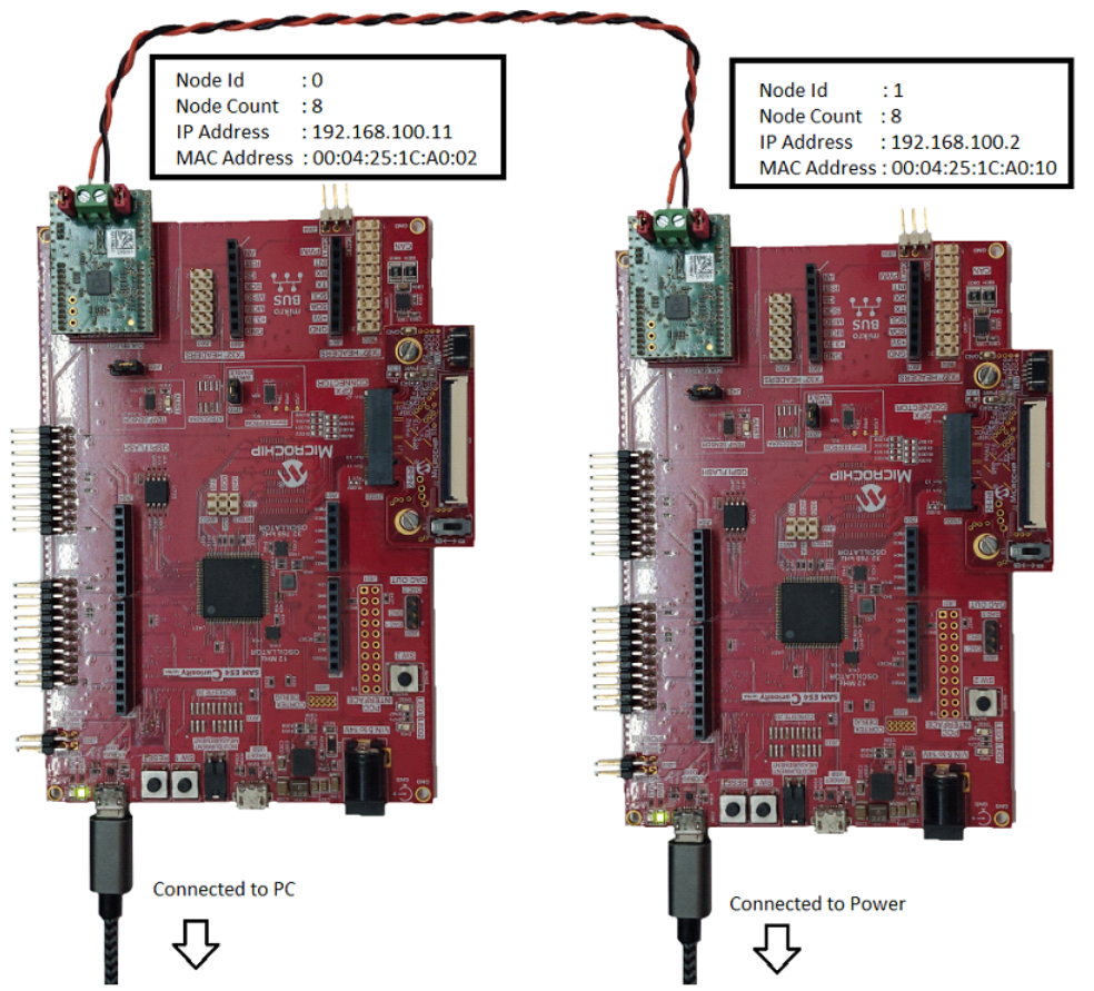- Establish a physical wiring with another 10BASE-T1S node as shown in the hardware