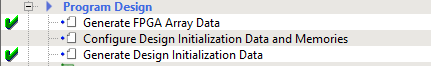 - In the Design Flow window, select Program Design, and then double-click Configure Design Initialization Data and Memories.