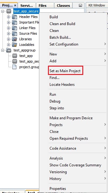 Figure 6-2. Make the Target Application Bootloader project as Main Project