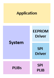 - The external EEPROM Driver uses the SPI Driver interface to implement the EEPROM-specific functionality, without any direct knowledge of the SPI hardware
