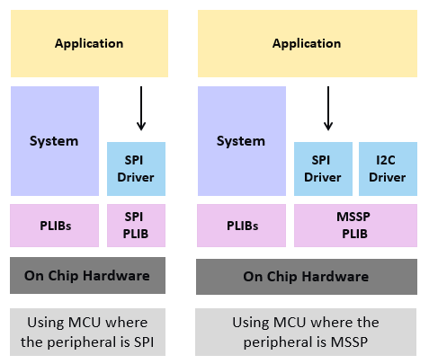 - The SPI driver provides an abstraction that works with either an SPI or an MSSP hardware peripheral