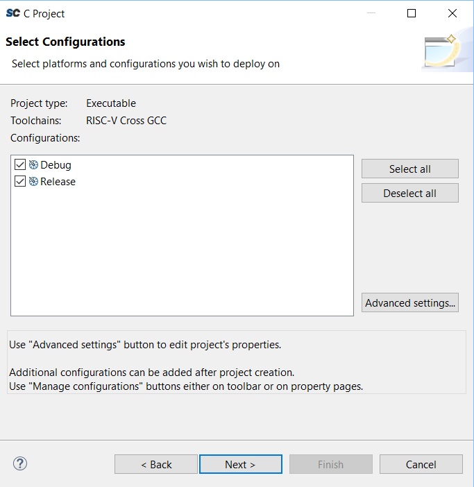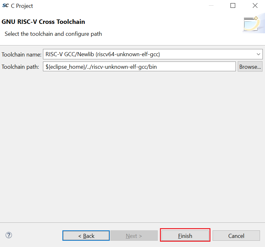 RISC-V Cross Toolchain dialog box are set as shown in the following