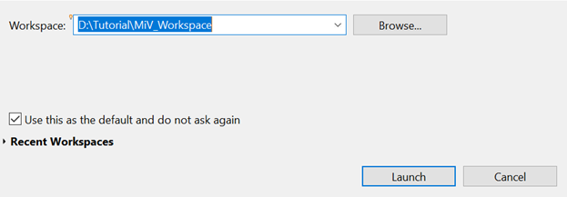 Launcher dialog box, paste D:\Tutorial\MiV_Workspace