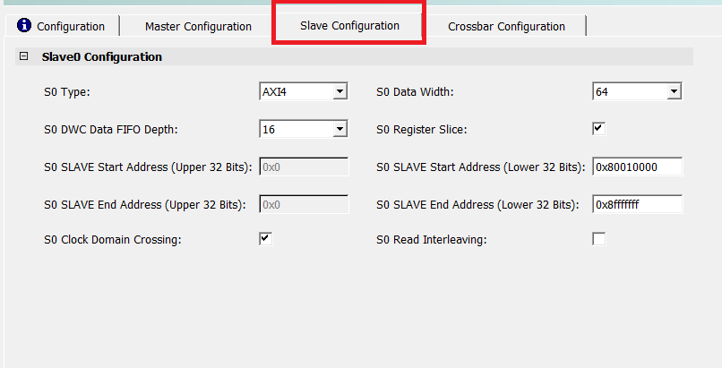 - S0 SLAVE Start Address (Lower 32 bits): 0x80010000