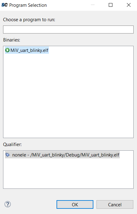 Figure 3-31. MiV_uart_blinky.elf Selection