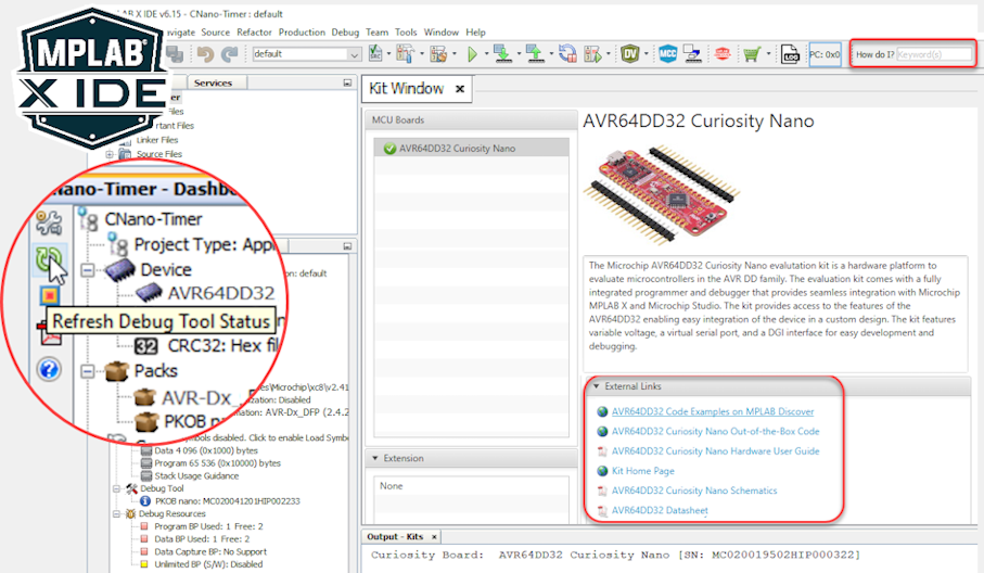 - If closed, reopen the Kit Window in MPLAB® X IDE through the menu bar