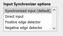 | Synchronized input | The input signal will be synchronized to the CLB clock, which is the default and safest option when unsure |
