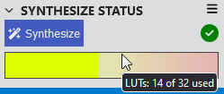 A synthesis process converts a logic design into bit stream form, which can be loaded into the CLB. Clicking the Synthesize button will trigger this.
