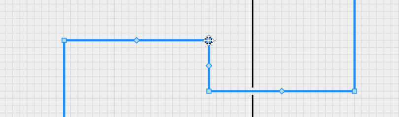 - Split segments can be joined by manually aligning the two segments by dragging the elbow node; dragging the mid-point will create an additional split