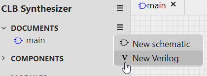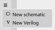 - In the documents drawer-menu, select New schematic or New Verilog
