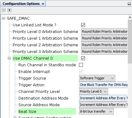 DMAC Safe-Plib must be configured as illustrated to supported to support all diagnostics: