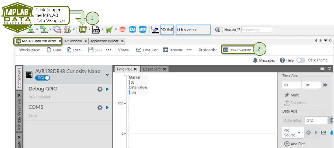This section describes the steps needed to set up the DV Run Time Library in the MPLAB Data Visualizer when using the MCC Melody DV Run Time Library.