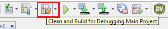 getting_started_pic32cm_pl10_cnanoas the main project, and in Project Properties, select the latest compiler version (v5.00). Clean and build the project by clicking the highlighted icon.Figure 5-19. Clean and Build Main Project