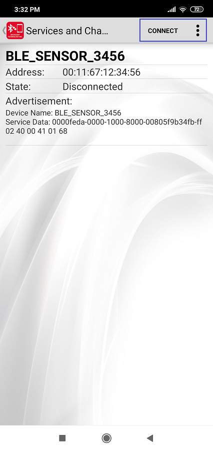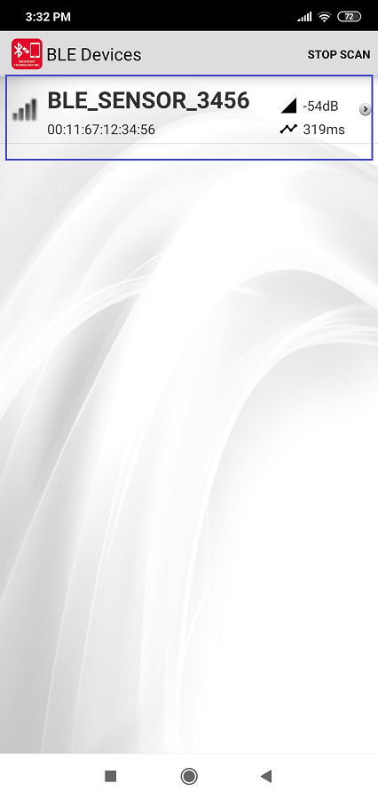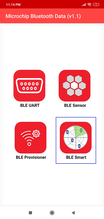 The “BLE Sensor” sub app in MBD mobile app is designed only to work with specific functionality. So, if new command is added in BLE sensor application, “BLE Sensor” mobile app will not know about it. To test the above newly added code, “BLE Smart” sub app in MBD can be used. Follow the below screenshots after launching MBD mobile app.