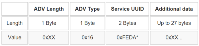 The Service Data type is used in advertising data. The data format is as illustrated below: