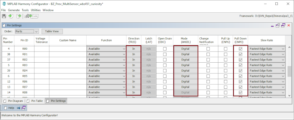- The user can configure this through pin configuration in Harmony3 Configurator. For more details, see the following figure.
